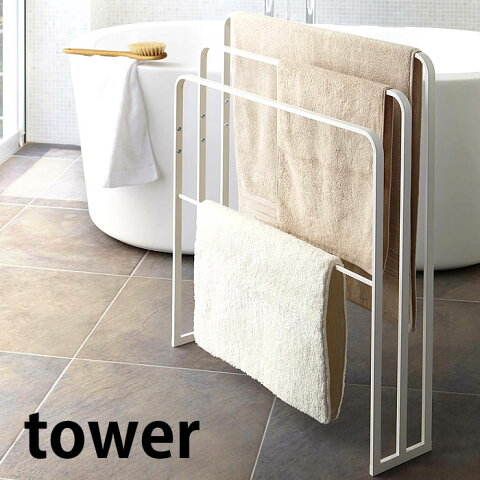 横から掛けられるバスタオルハンガー 3連 タワー tower タオル掛け タオル干し バスタオル干し バスタオルスタンド ホワイト ブラック スリム バスマット干し タワーシリーズ 脱衣所 洗面所 バスグッズ おしゃれ スタイリッシュ 白 黒 4979 4980 山崎実業 yamazaki ヤマジツ